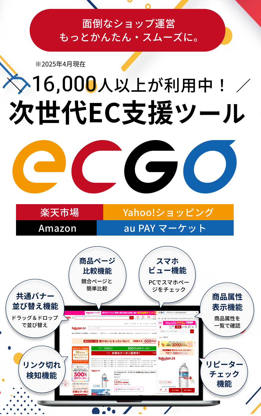 ECGOは、ショップ運営の"かゆいところに手が届く"20種類以上の便利機能を搭載!