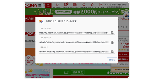 楽天標準の「お気に入り登録」ボタンとは別に、好きな場所に画像リンクとして設置でき、アピールが自由自在! リピート購入やファンづくりに活用できます。