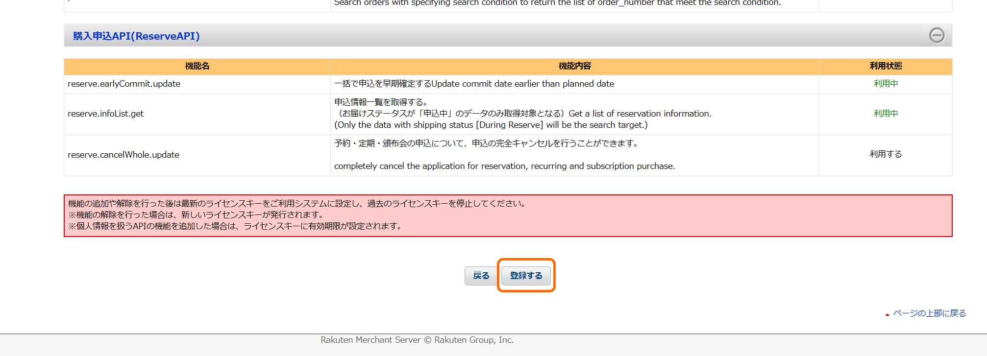 変更内容の確認をし、一番下までスクロールし、「登録する」ボタンをクリックします。