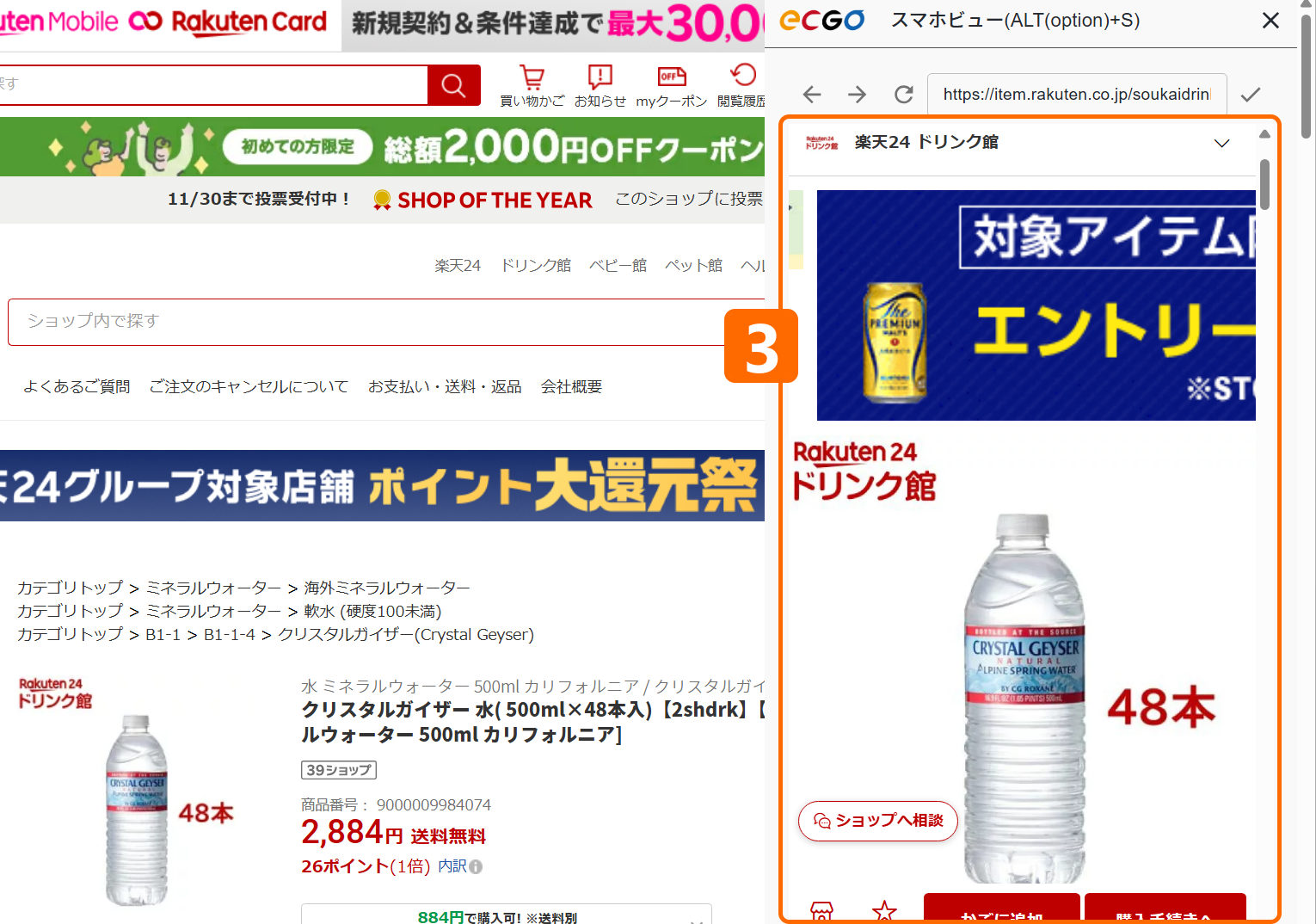 - 画面右側にあるECGOアイコンをクリックします。