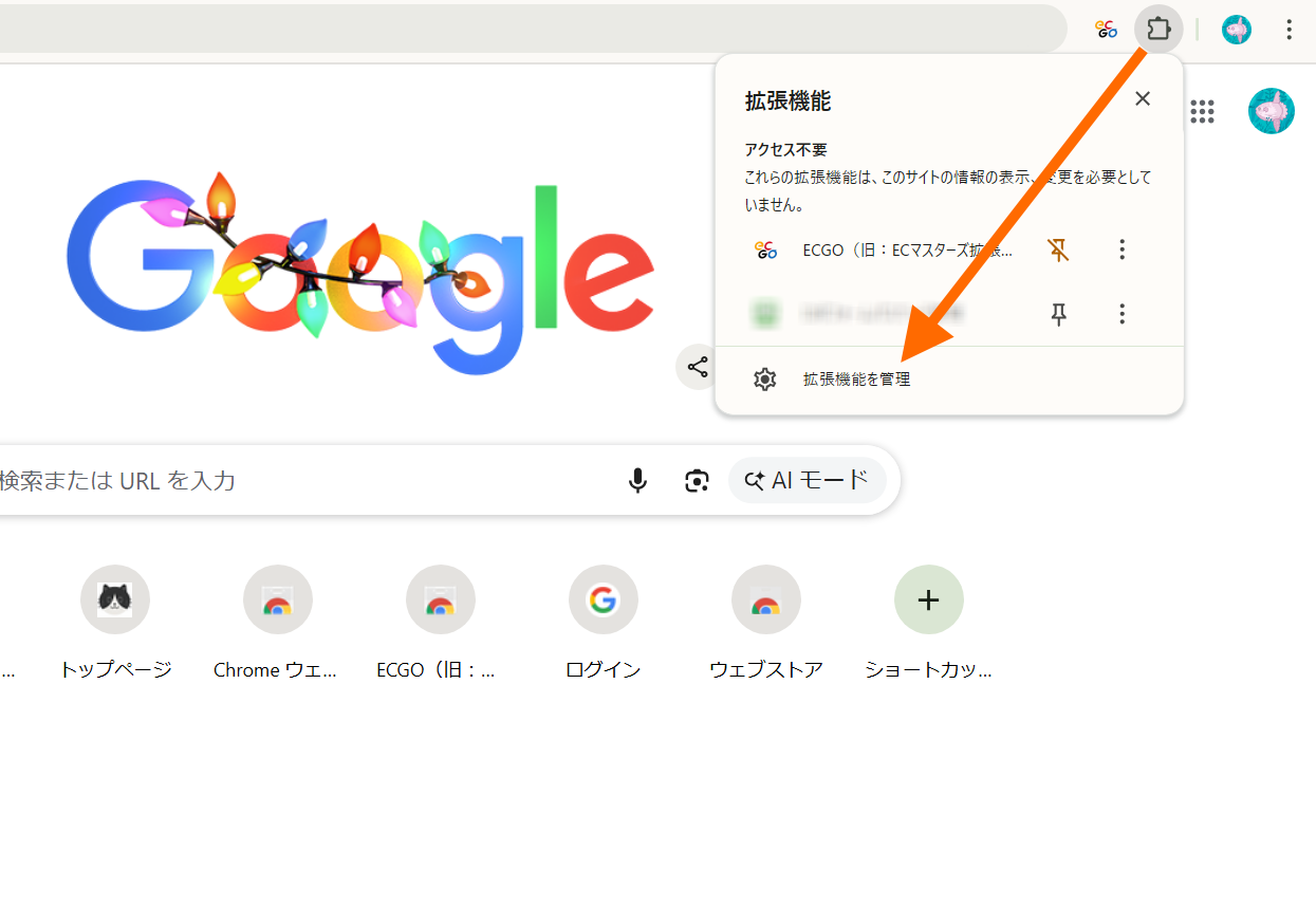 Google Chromeの上部メニューから、拡張機能マークをクリックして、