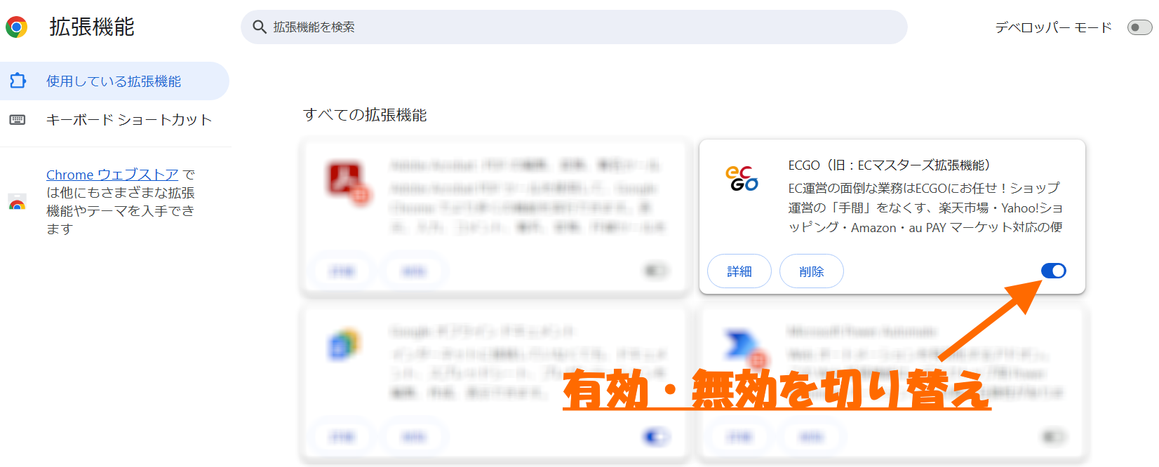 拡張機能をインストールしたまま、一時的に無効にする方法です。